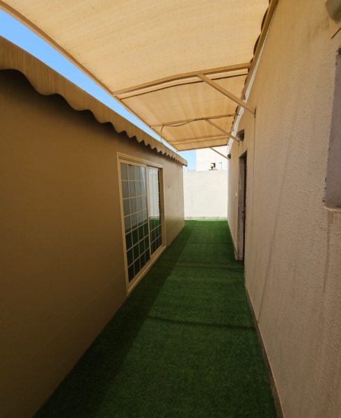 Luxury rooftop apartment in Al-Mareekh neighborhood (Al-Taysir Plan) close to Palestine Street Roundabout and Al-Rahma Mosque. Apartment features: 5 rooms + living room, 3 bathrooms + kitchen. * The apartment features a private rooftop, independent electricity meter, independent upper and lower water tanks, private indoor parking, driver’s room with a separate bathroom. Quiet location close to all services, fully furnished + includes 4 window air conditioners + 2 split units. External surveillance cameras for the rooftop, apartment entrance, and parking. Contact us via the toll-free hotline and ask about offer number (359) 8002450000. Call hours: Saturday to Thursday from 10 AM to 10 PM. Al-Abnaq Real Estate and Property Management, your first destination for a unique and exceptional real estate experience. License number: 1200007304