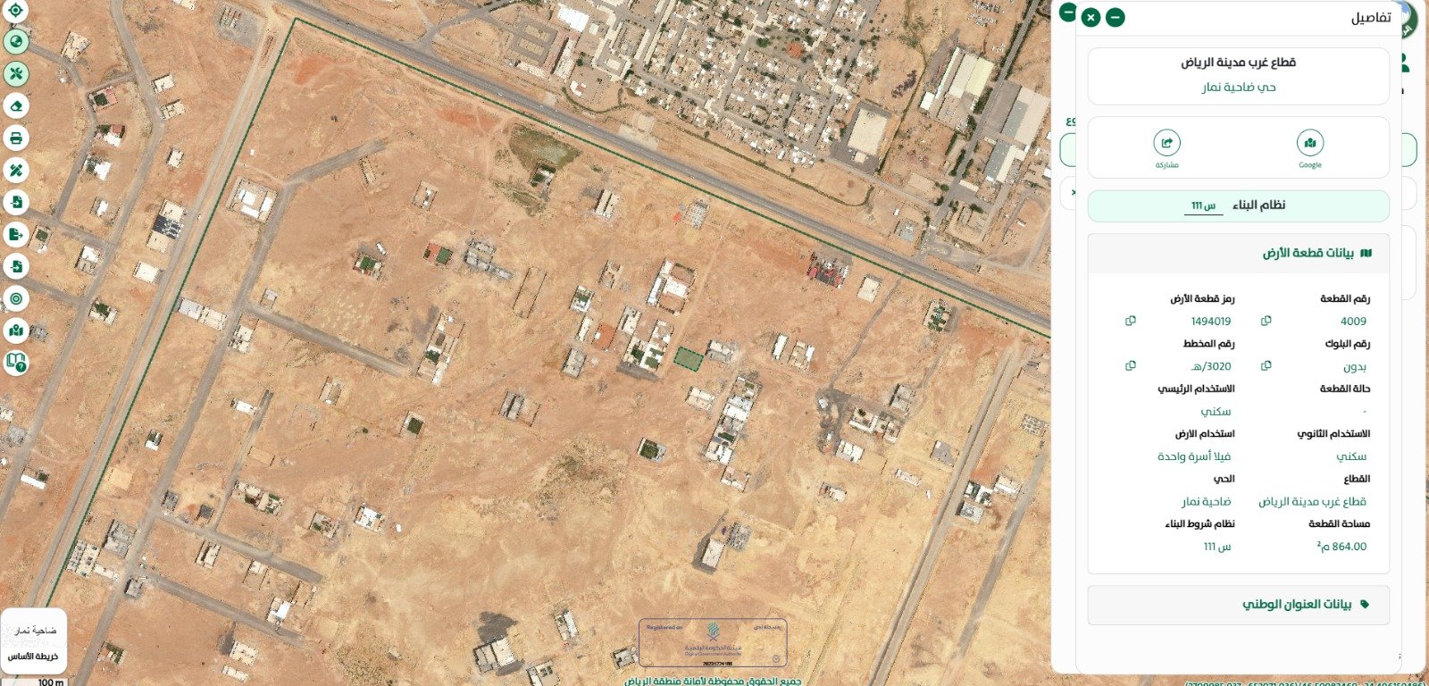 أرض سكنية في ضاحية نمار غرب الرياض بمساحة864 متر مربع
